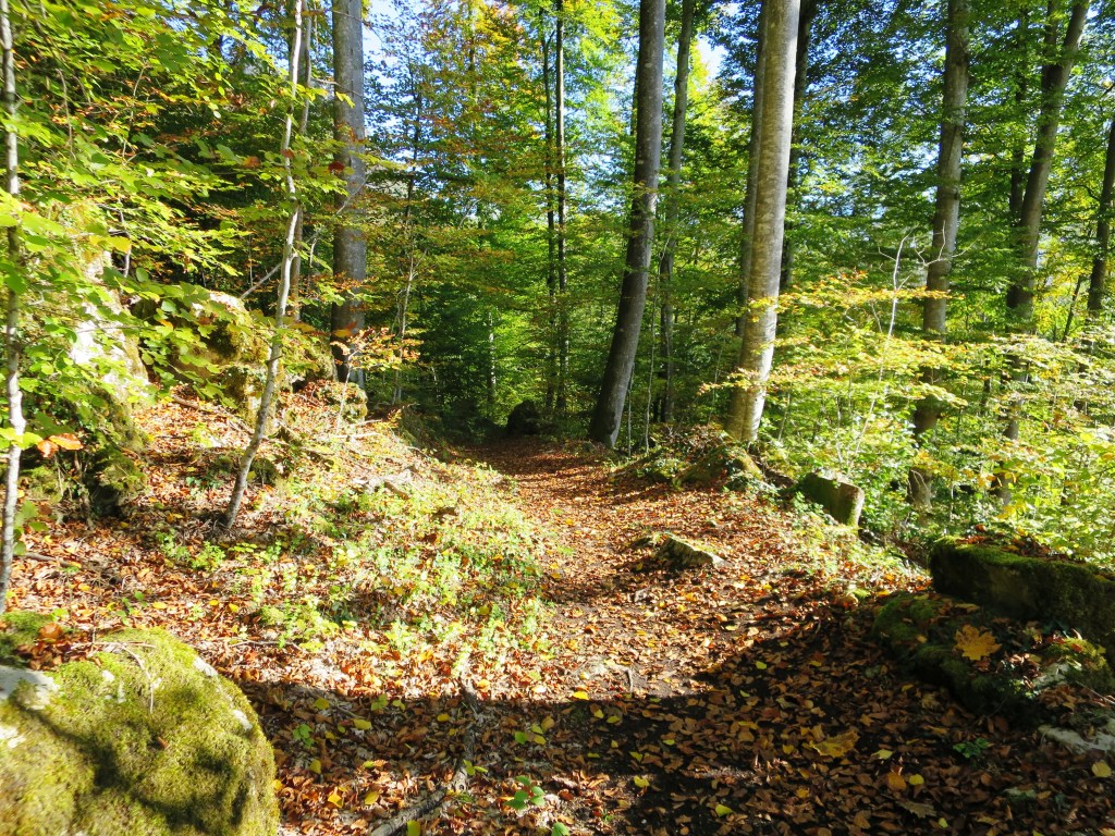 Das überaus milde Oktoberwetter bescherte uns einen Traumtag. Angesichts der sehr warmen Temperaturen waren wir allerdings froh, dass ca. zwei Drittel der Wanderung durch den wunderbar herbstlich verfärbten Wald führte.