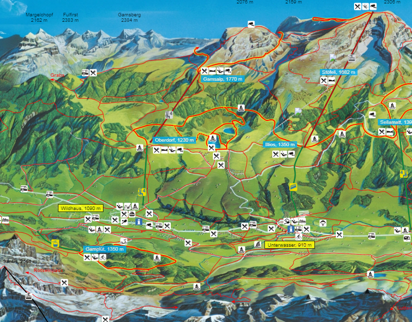 > Mit der Gondelbahn zurück nach Wildhaus oder den leichten Wanderweg zurück nehmen